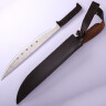 Průchozí střenková čepel je vyrobena z kalené uhlíkové oceli 1085. Obložení stopky čepele z tvrdého dřeva je ovinuté pevnou semišovou kůží. Čepel je ostře nabroušená. V ceně mačety obdržíte kožené pouzdro s popruhem a pevnou mosaznou přezkou. Mačeta Genesis se nosí přes pravé rameno na levé straně. To vám ponechává pravou ruku volnou. Můžete tak mačetu rychle vytáhnout a pokud na pravé straně u pasu nosíte palnou zbraň, mačeta vám nikterak nebrání v přístupu k ní. Celková délka je cca 635mm. Délka čepele je cca 464mm. Více informací k produktu ...