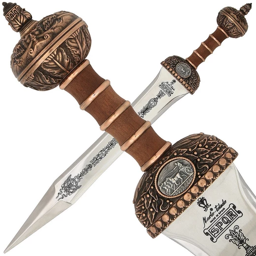 Tato replika vychází z historického typu Gladius Mainz, který byl typický svou širokou čepelí a dlouhým hrotem. Čepel je vyrobena z kvalitní nerezové oceli AISI 440, která je kalená a vyleštěná do zrcadlového lesku. Středem čepele se táhne tmavý leptaný pruh s květinovými motivy a ikonickou zkratkou S.P.Q.R. (Senatus Populusque Romanus), která symbolizuje moc římského senátu a lidu.