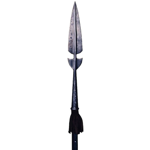 Upozornění: Originál této tyčové zbraně dosahoval větší délky, než je max. délka přepravy (max. cca 198cm). Pokud si jí objednáte včetně ratiště, dodáme Vám jí v rozloženém stavu: dřevěná tyč o délce cca 198cm a kovová horní část. Po obdržení si repliku budete muset sami zkompletovat. Potřebný spojovací materiál, kování ratiště i kožené třásně jsou obsaženy v dodávce.
