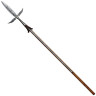 Upozornění: Originál této tyčové zbraně dosahoval větší délky, než je max. délka přepravy (max. cca 198cm). Pokud si jí objednáte včetně ratiště, dodáme Vám jí v rozloženém stavu: dřevěná tyč o délce cca 198cm a kovová horní část. Po obdržení si repliku budete muset sami zkompletovat. Potřebný spojovací materiál, kování ratiště i kožené třásně jsou obsaženy v dodávce.