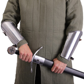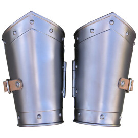 Při oblékání chráničů předloktí utáhněte přední kožený řemen kolem zápěstí tak, aby kovové pruty sahaly až za loket. Více informací k produktu ...
