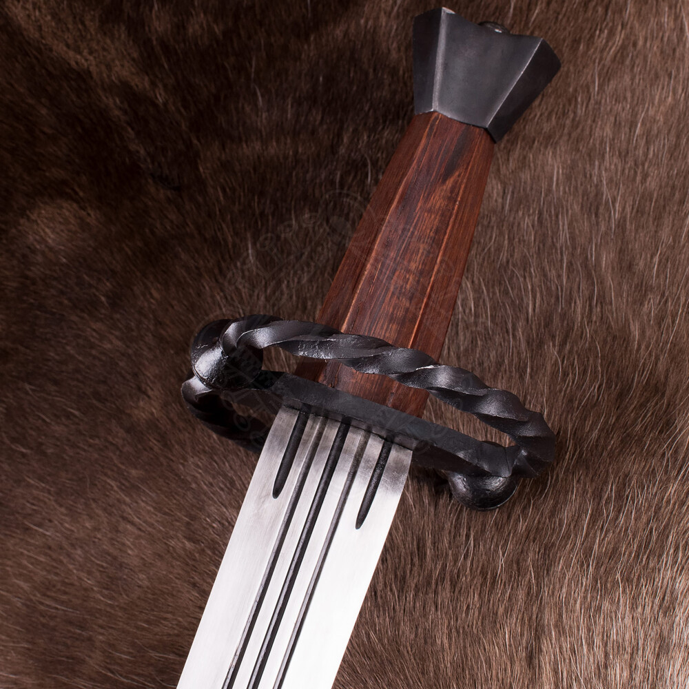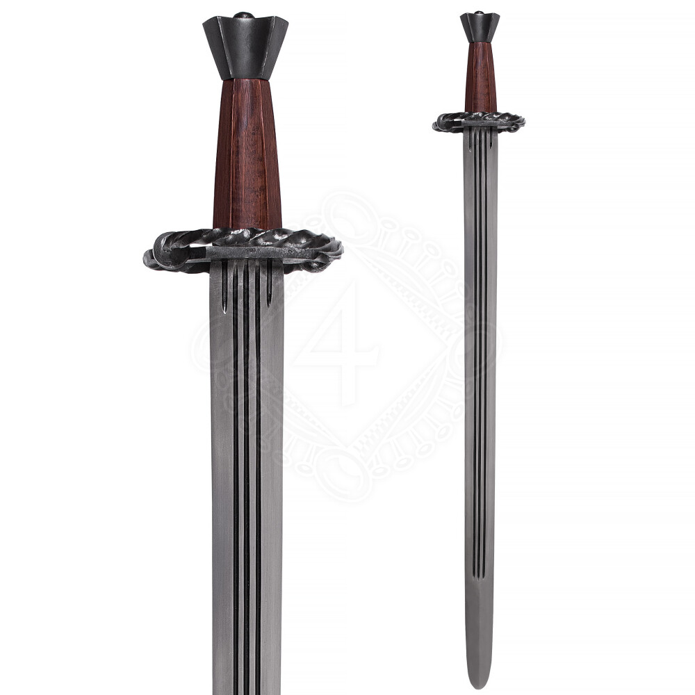 Špička této repliky je zaoblená, čepel má tupé hrany o síle 2-3mm. Meč je vhodný ne lehký scénický šerm či nácvik soubojů. Pevná záštita i hlavice jsou ručně kované. Čepel má tři žlábky.