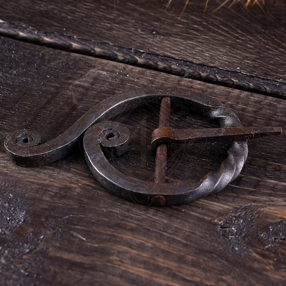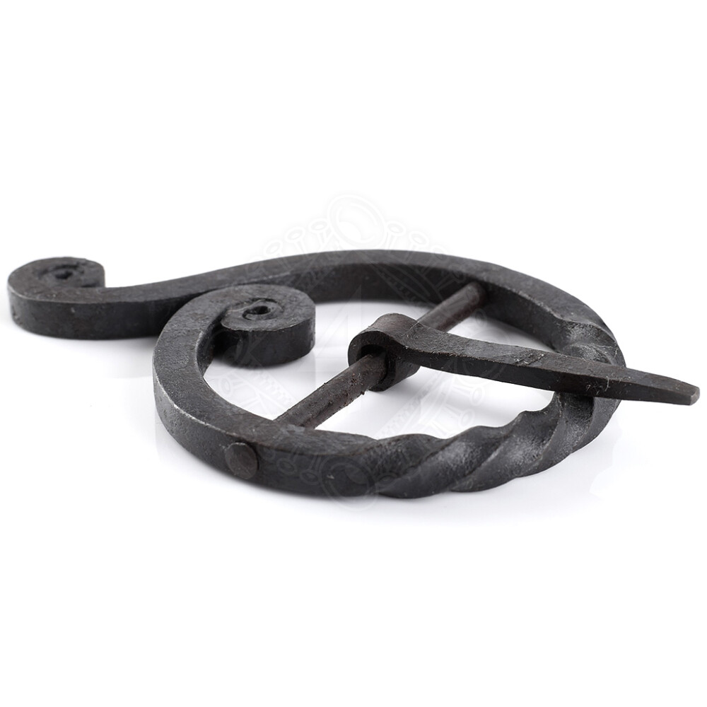 Ručně kovaná železná přezka na opasek, kovaná z cca 6mm silného hranolu. Oba konce obrobku jsou stočené do spirály, střed je torzně kroucený. Jehla do opasku je cca 5cm dlouhá. Více informací k produktu ...