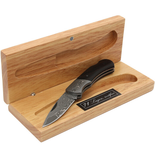 Čepel damaškového nože se skládá ze 71 vrstev nerezové damaškové oceli, jádro se skládá z 8Cr13MoV a je také nerezové. Bradka je také vyrobená z damaškové oceli. Nůž je vybaven klasickou pojistkou čepele lockback. Rukojeť je obložená ebenovým dřevem. Více informací k produktu ...