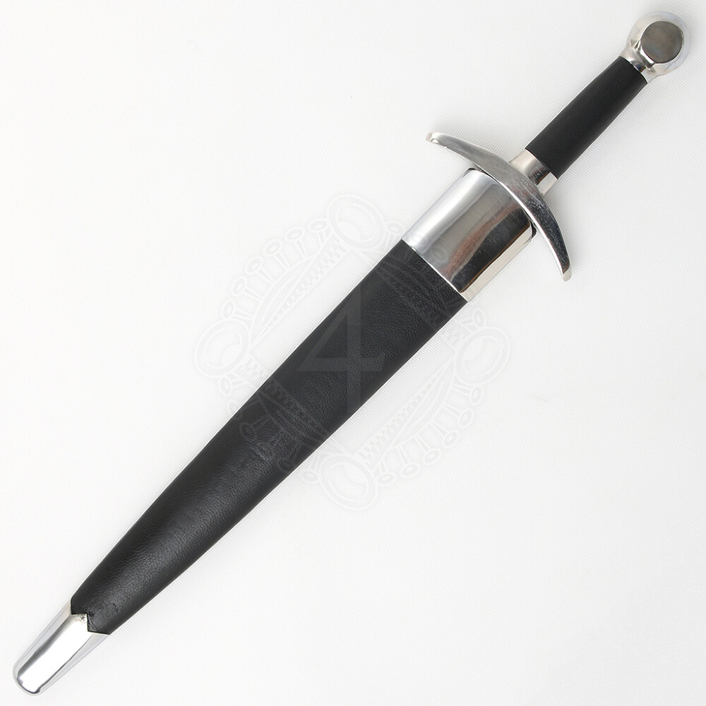 Ručně kovaná středověká čepel v typické podobě 11. století. Rukojeť je vyrobena z tvrdého dřeva a je ovinutá kůží. Hlavice dýky je na konci fixována dvěma kontramaticemi.  Jedná se o dekorativní (kostýmové) provedení nevhodné na šerm! Více informací k produktu ...