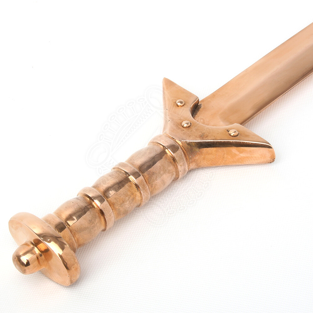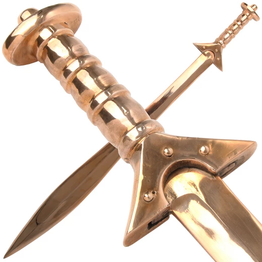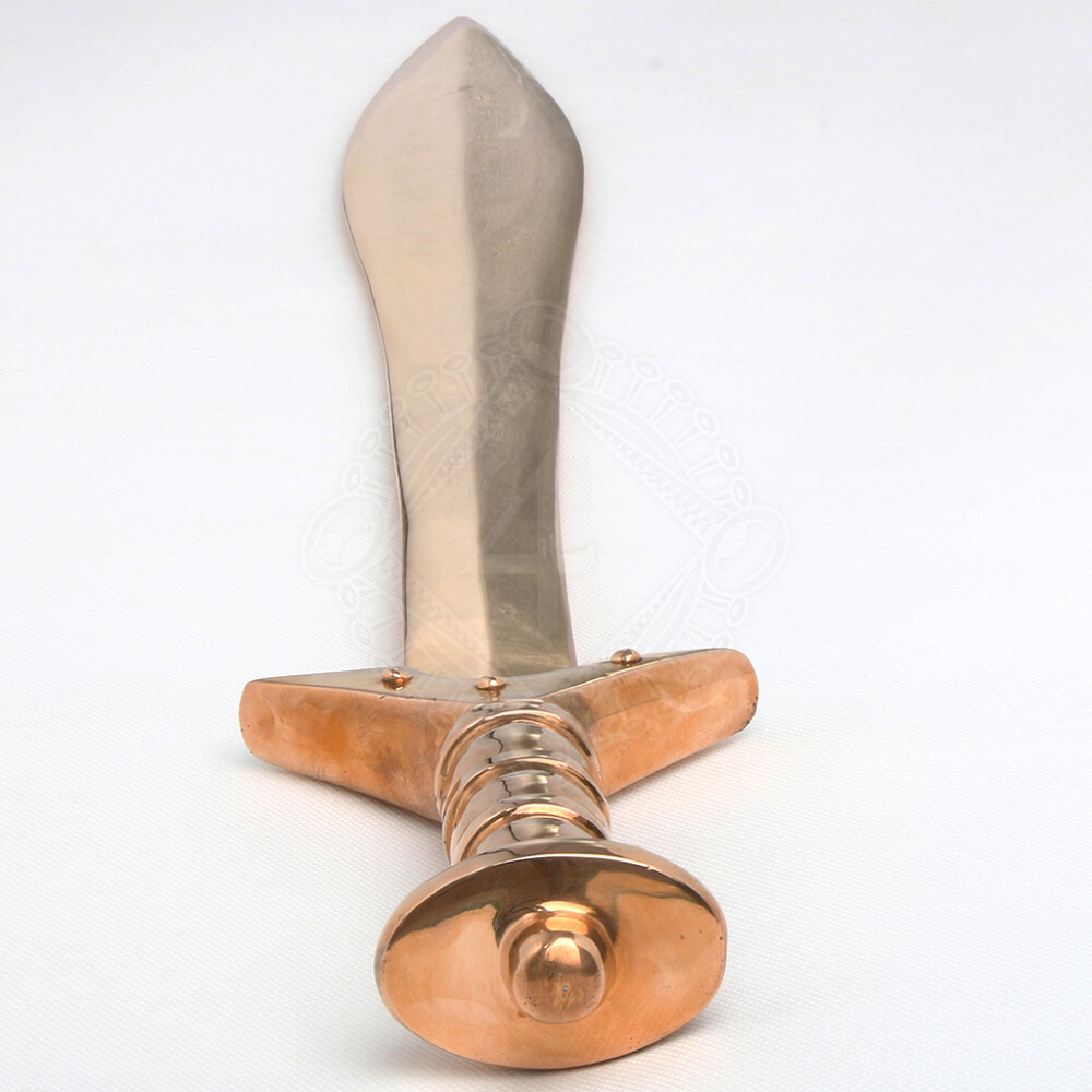 Tato replika keltského krátkého meče z doby bronzové je vyrobena včetně věrných detailů. Skládá se ze dvou částí, rukojeti a čepele. Oba díly jsou odlity z bronzu a jsou k sobě snýtované. Meč se zřejmě používal jak k sekání, tak k bodání. Jeho těžiště leží na dnešní poměry daleko od rukojeti. Špička čepele je velmi ostrá. Meč je dodáván bez pochvy. Více informací k produktu ...