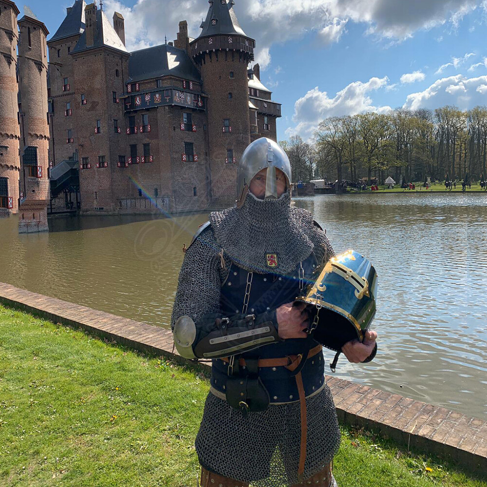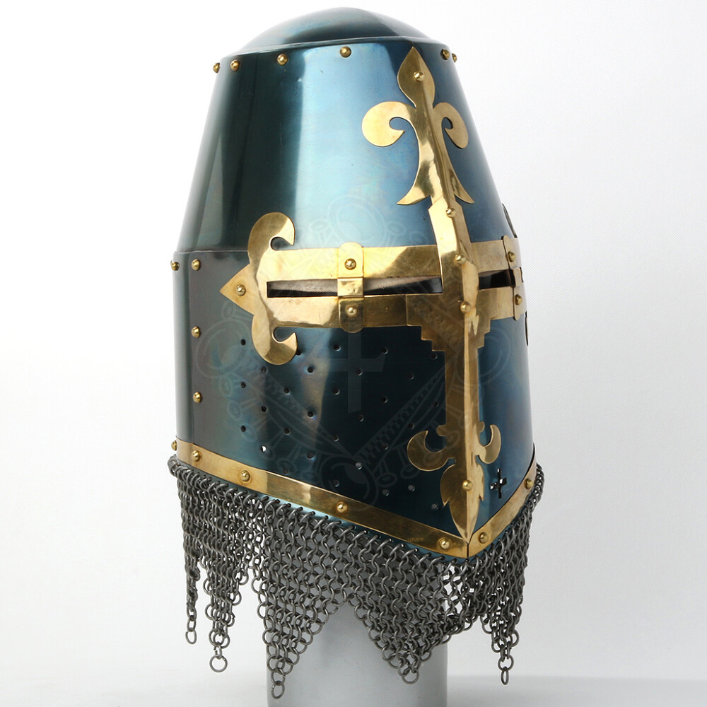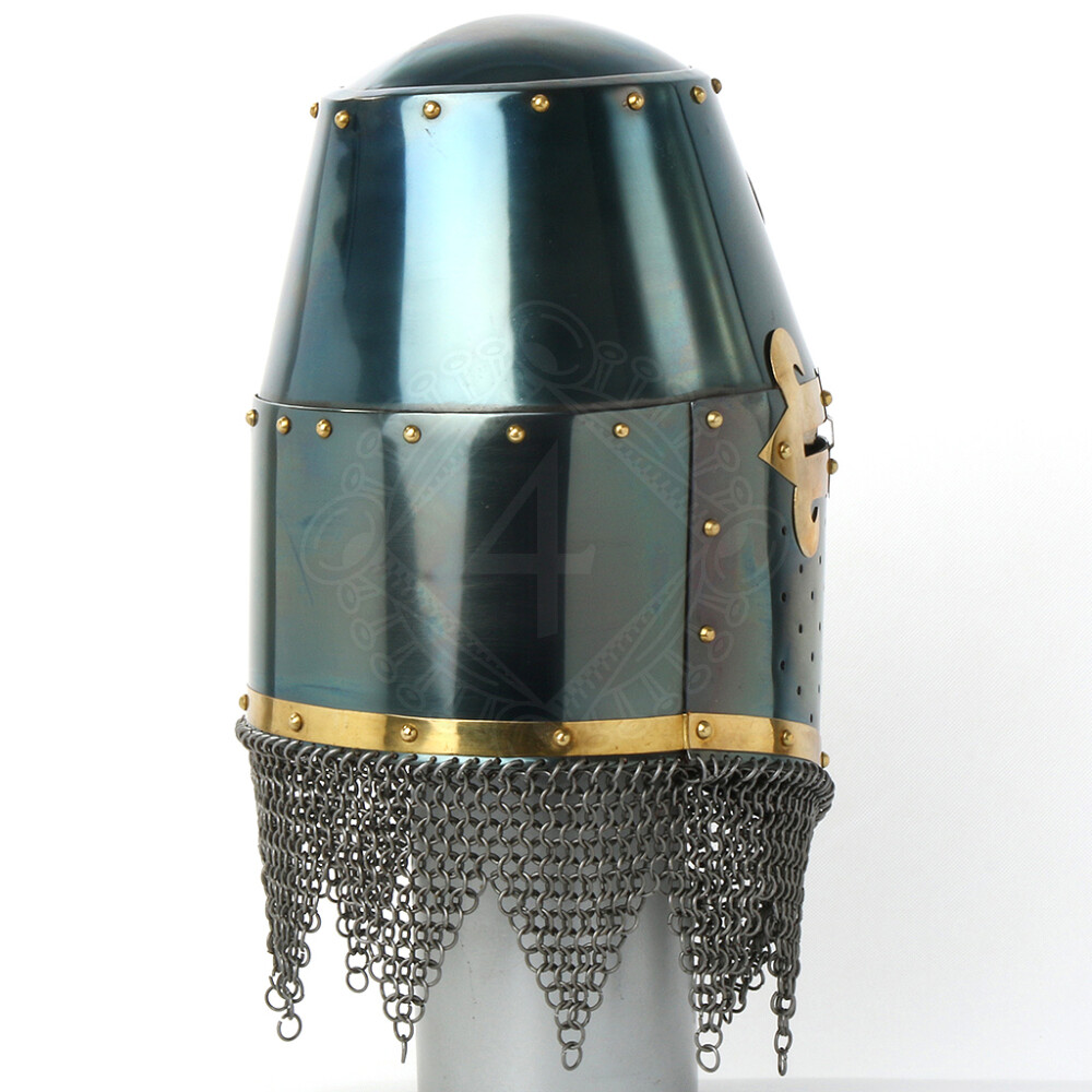 2xTato kbelcová přilba je replikou pozdně středověké pohřební přilby rytířů z Kornburgu uložené v Kostele všech svatých v Kleinschwarzenlohe. Rodina Von Kornburg byl patricijským rodem, založená roku 1361 v Norimberku. Přilba je datována do zhruba stejné doby kolem roku 1375 a byla pravděpodobně vyrobena Norimberským platnéřem. V současnosti je přilba vystavena v Německém národním muzeu v Norimberku. Více informací k produktu ...