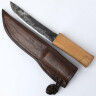 Pochva je individuálně ručně vyráběná přesně na míru každého nože. Je zdobena tepaným a vyřezávaným motivem volavky.