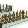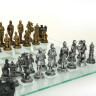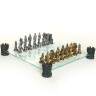 Šachový set Rytíři s pěšáky jsou barevně rozděleny. Jedna strana je v imitaci bronzu, druhá v imitaci cínu. Skleněná šachovnice je vložena do rohů v podobě hradních věží. Užijte si originální šachovou hru! Více informací k produktu ...