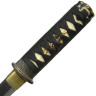 - Menuki: Pod opletem jsou viditelné zlaté ozdoby (menuki), které zlepšují úchop a dodávají rukojeti eleganci.