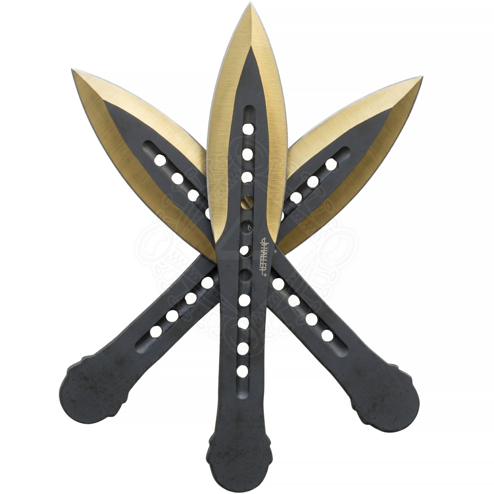 Trojice stínů se zlatým hrotem: Sada vyvážených vrhacích nožů