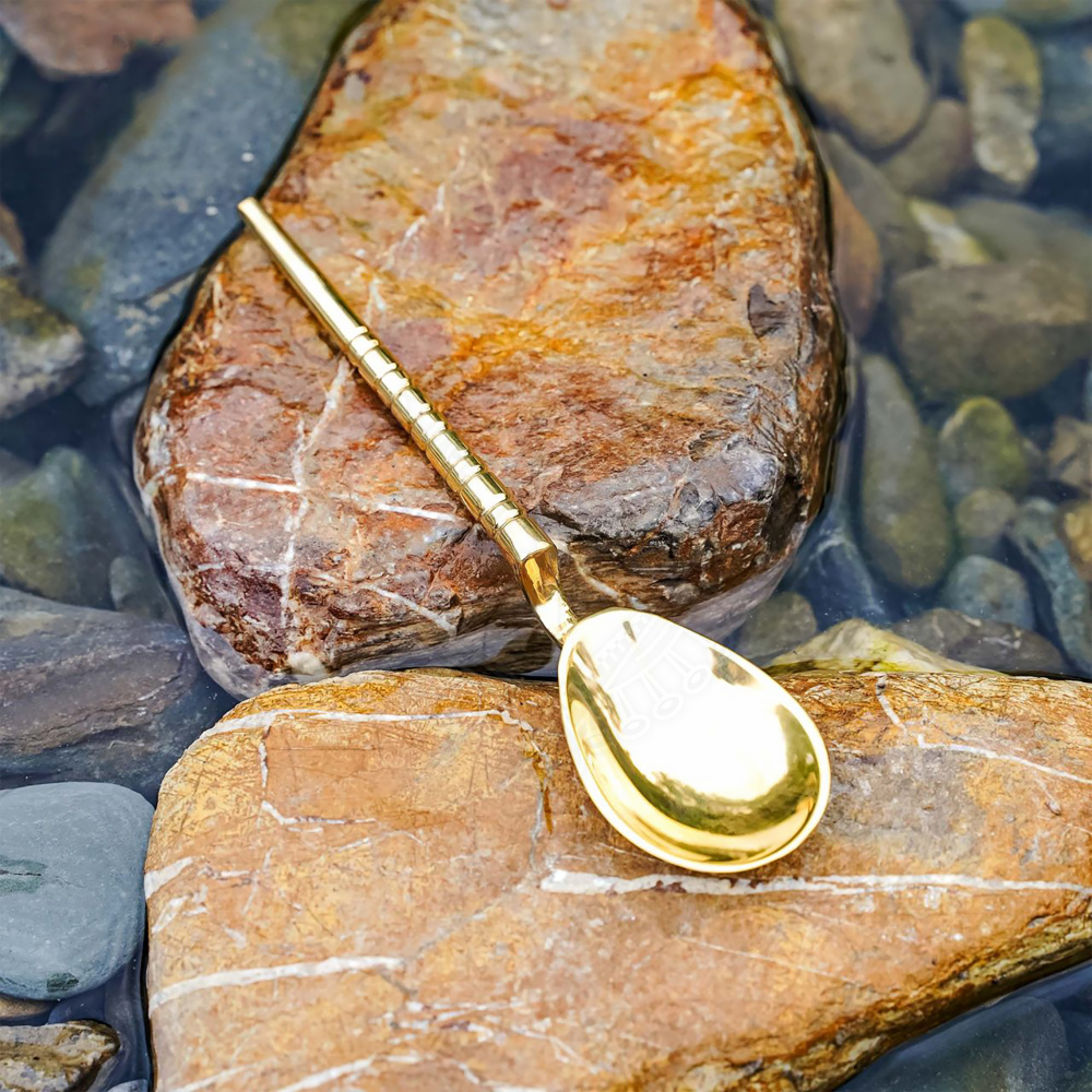 Tato lžíce je vyrobena z masivní mosazi s vysoce leštěným povrchem. Její design věrně kopíruje archeologické nálezy lžic typu ligula, které byly populární zejména v období pozdního Římského císařství (cca 3. – 5. století n. l.).