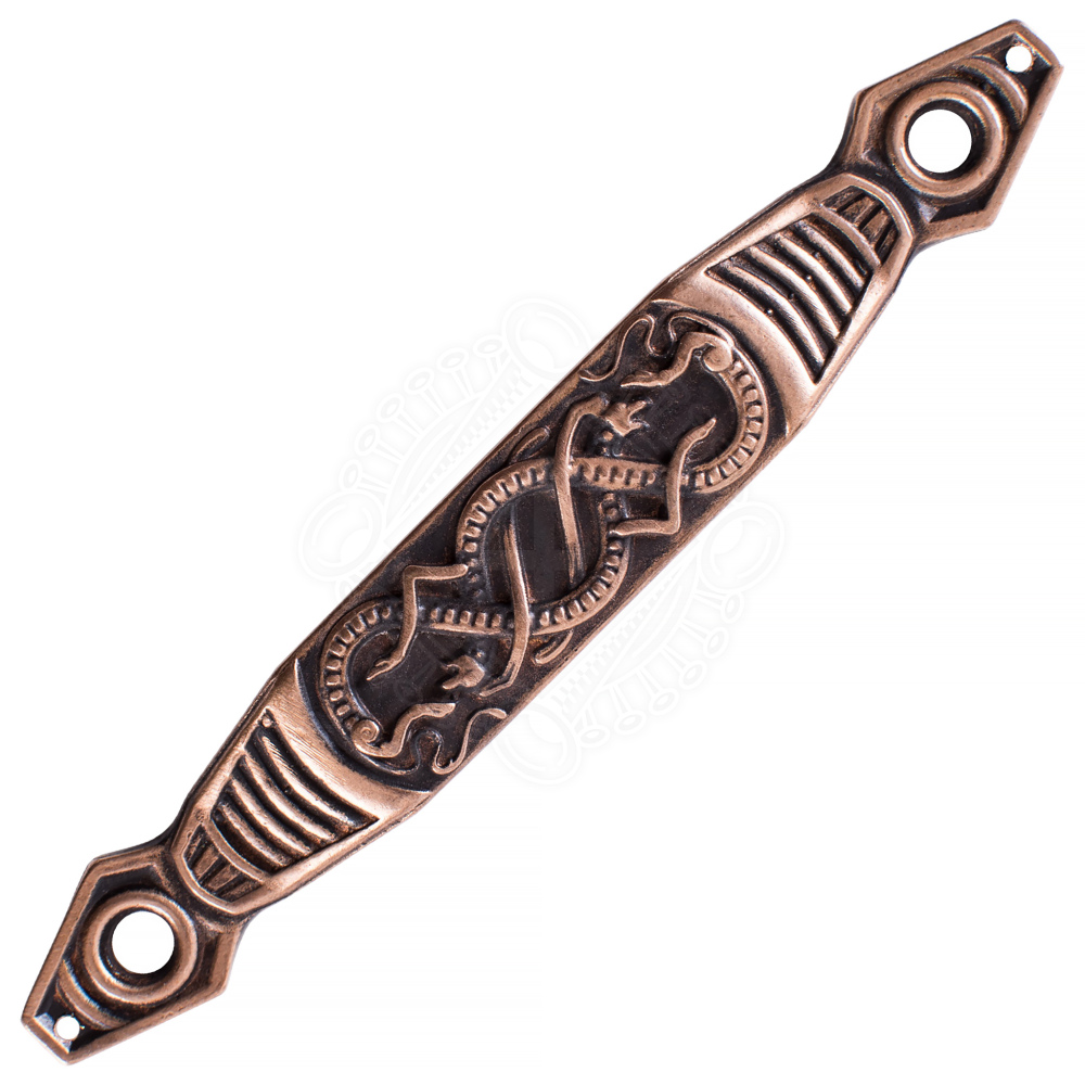 Průvlak opasku na vikingskou pochvu, malí staronordičtí hadi, bronz