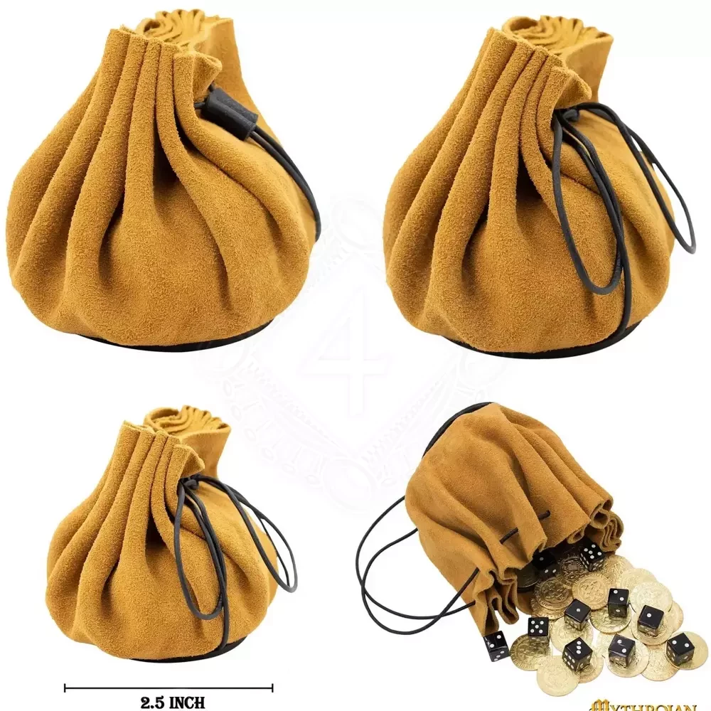 Kožený měšec z broušené kůže, semišový váček na mince a kostky