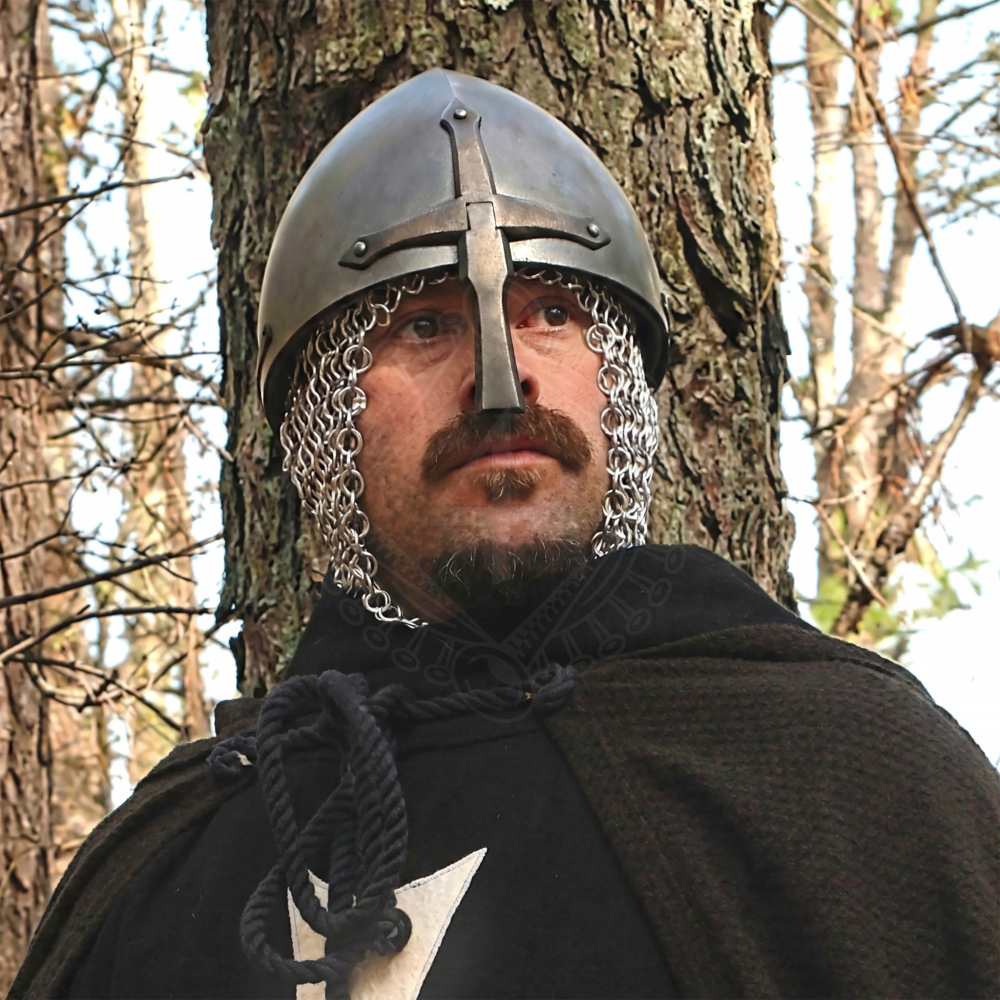 Johanitští rytíři byli známí svou statečností a oddaností. Jejich výzbroj musela být kvalitní a funkční, aby obstála v náročných podmínkách křížových výprav a obrany křesťanských území. Přilby s nánosníkem patřily k základní výbavě, poskytující ochranu obličeje při zachování relativně dobrého výhledu a možnosti dýchání. Tento typ helmy byl rozšířený napříč Evropou a Blízkým východem v období od cca 11. do 13. století.