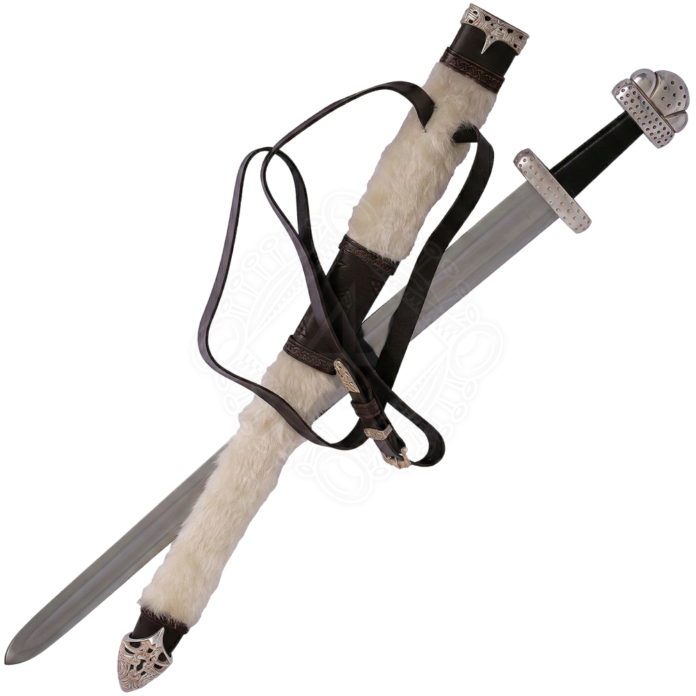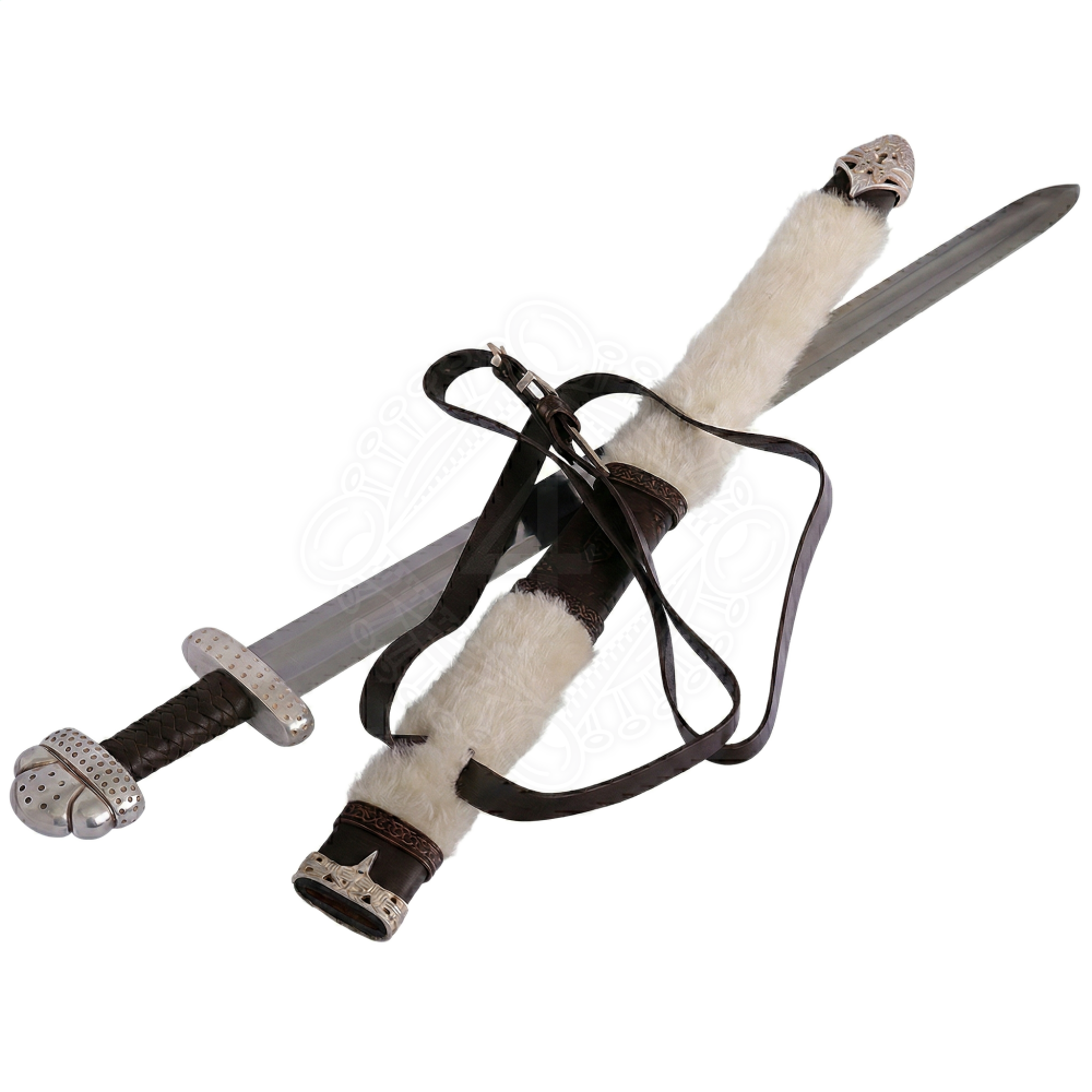 Královský vikinský meč s kožešinovou pochvou - Outlet